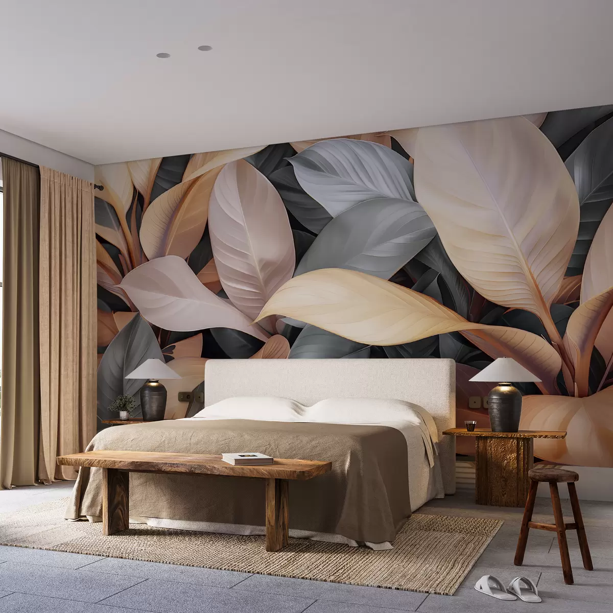 Fototapeta Duże tropikalne liście w kolorach niebieskim i beżowym Nr w01587v2