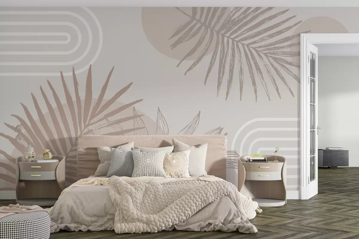 Fototapeta Geometryczna tapeta z liśćmi palmy w stylu boho Nr w01601