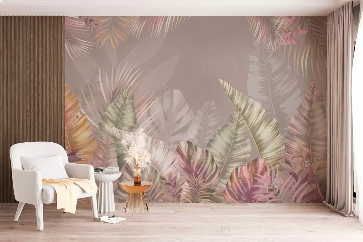 Fototapeta Tropikalne liście w delikatnych pastelowych odcieniach Nr w01684