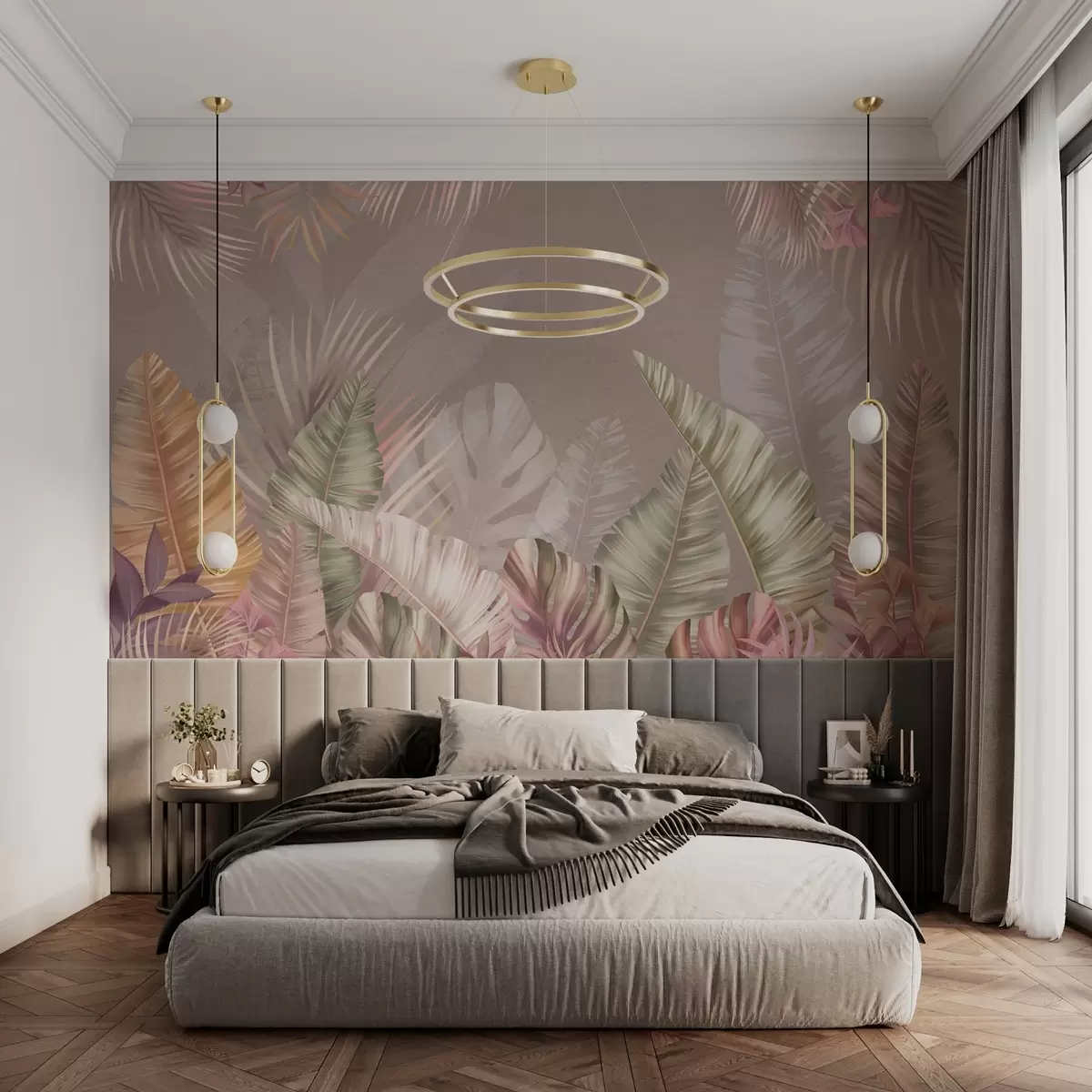 Fototapeta Tropikalne liście w delikatnych pastelowych odcieniach Nr w01684