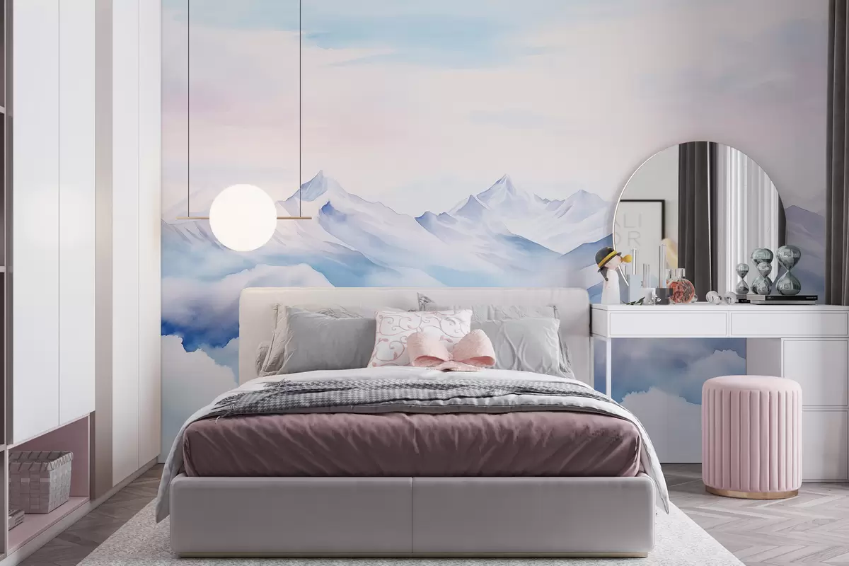 Fototapeta Krajobraz górski, akwarela, delikatne fioletowe kolory Nr w01787
