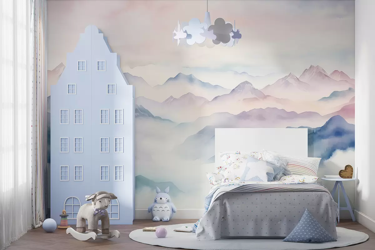Fototapeta Eteryczny krajobraz górski, chmury, akwarela Nr w01791