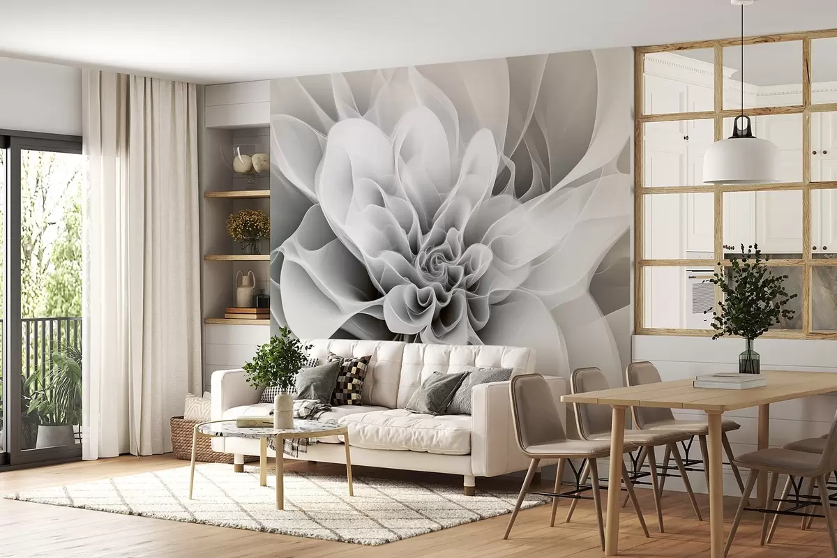 Fototapeta Elegancki abstrakcyjny obraz kwiatu z gładkimi liniami w kolorze szarym Nr w01853v1