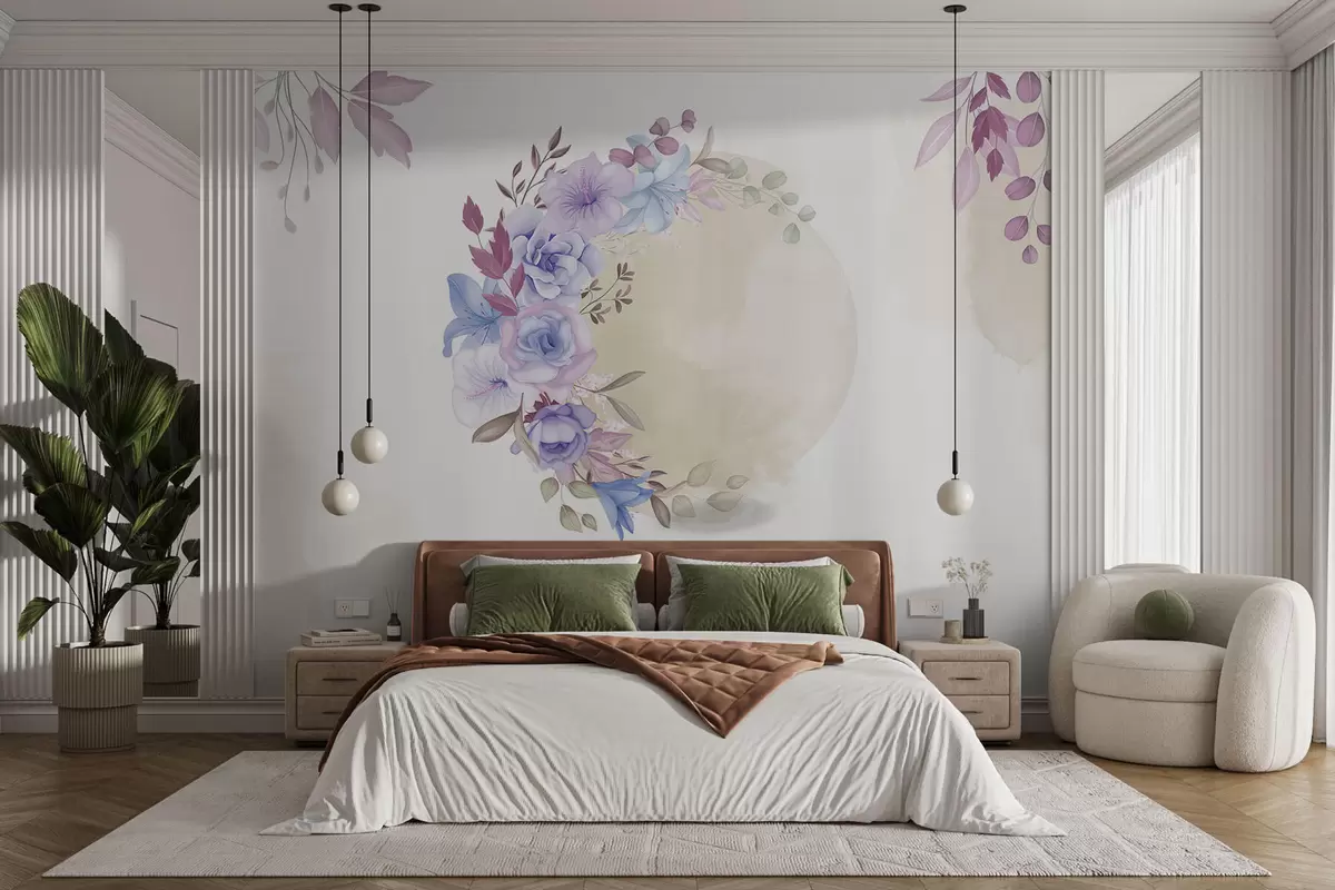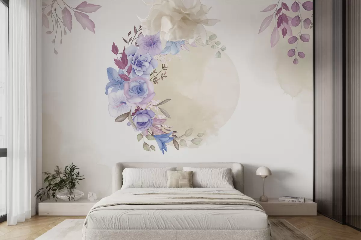 Fototapeta Delikatne kwiaty w kształcie półksiężyca w stylu akwareli z beżowymi plamkami Nr w01874