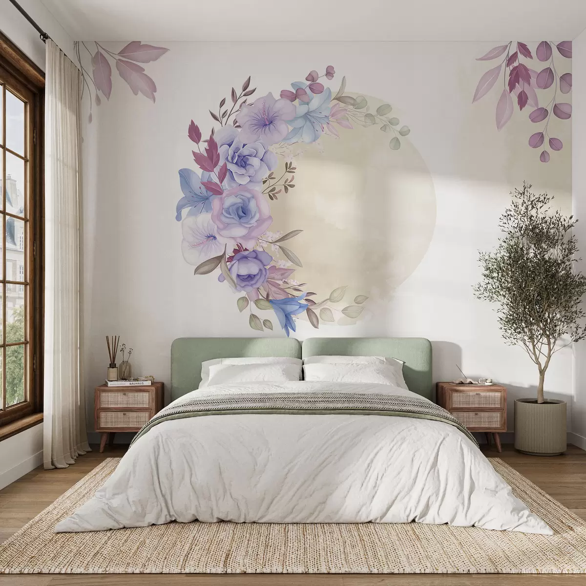 Fototapeta Delikatne kwiaty w kształcie półksiężyca w stylu akwareli z beżowymi plamkami Nr w01874