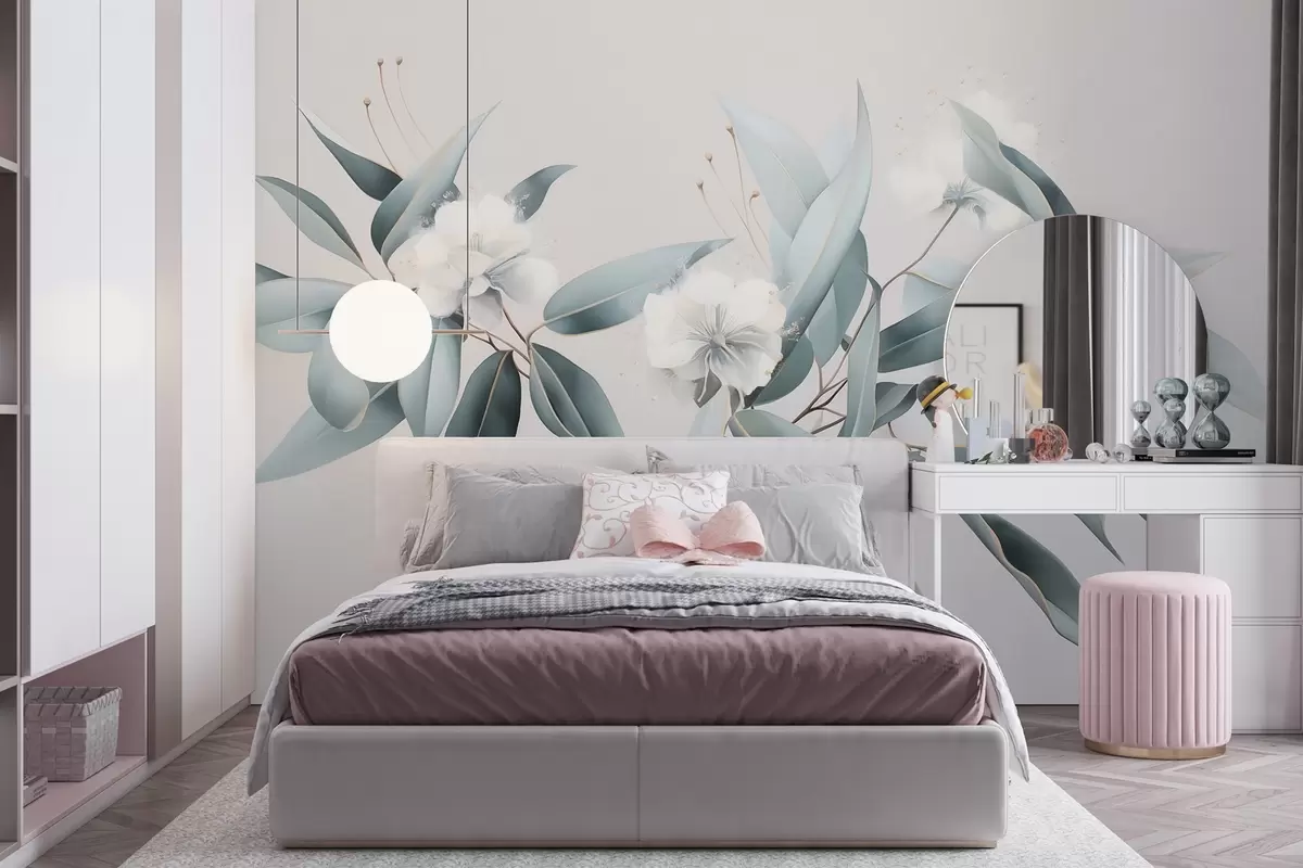 Fototapeta Bawełniane kwiaty, natura, rysunek akrylowy, delikatne szare kolory Nr w01884