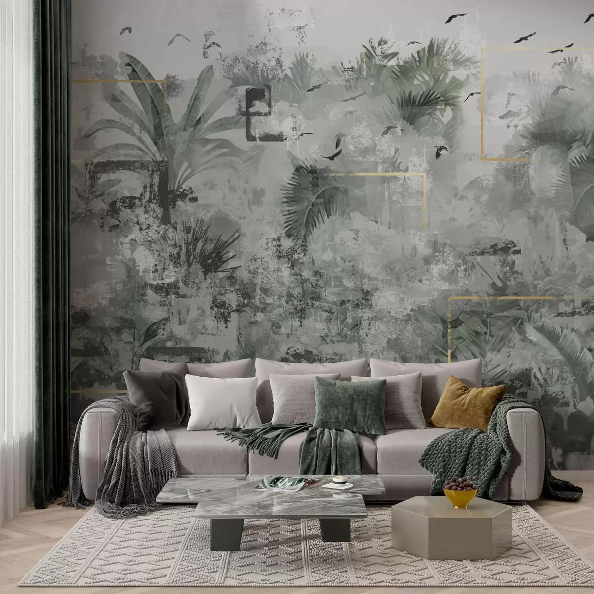 Fototapeta Sylwetka lasu deszczowego w stylu grunge Nr w01917