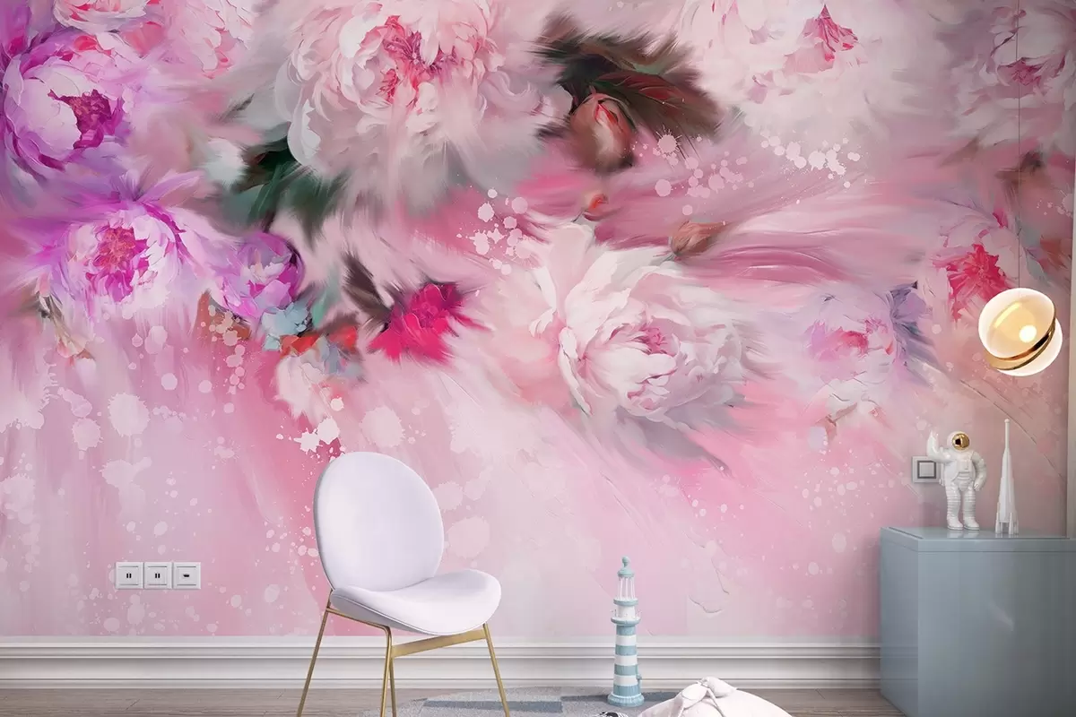 Fototapeta Piwonie akrylowe, pociągnięcia pędzlem, kwiatowe, delikatne pastelowe różowe kolory Nr w02021v1