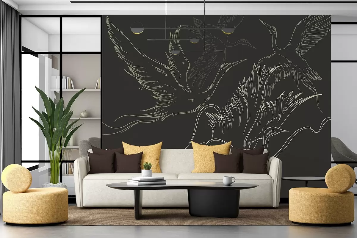 Fototapeta Ptaki latające, minimalizm, line art, natura, ciemne tło Nr w02061v3