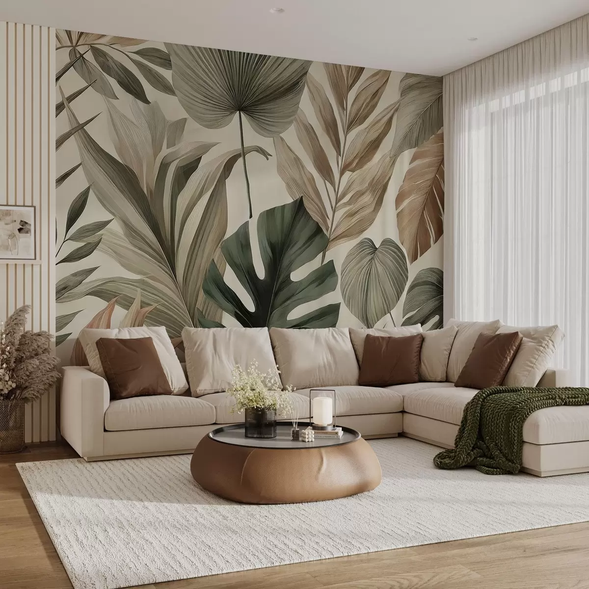 Fototapeta Duże tropikalne liście w powściągliwych, delikatnych pastelowych odcieniach Nr w02082