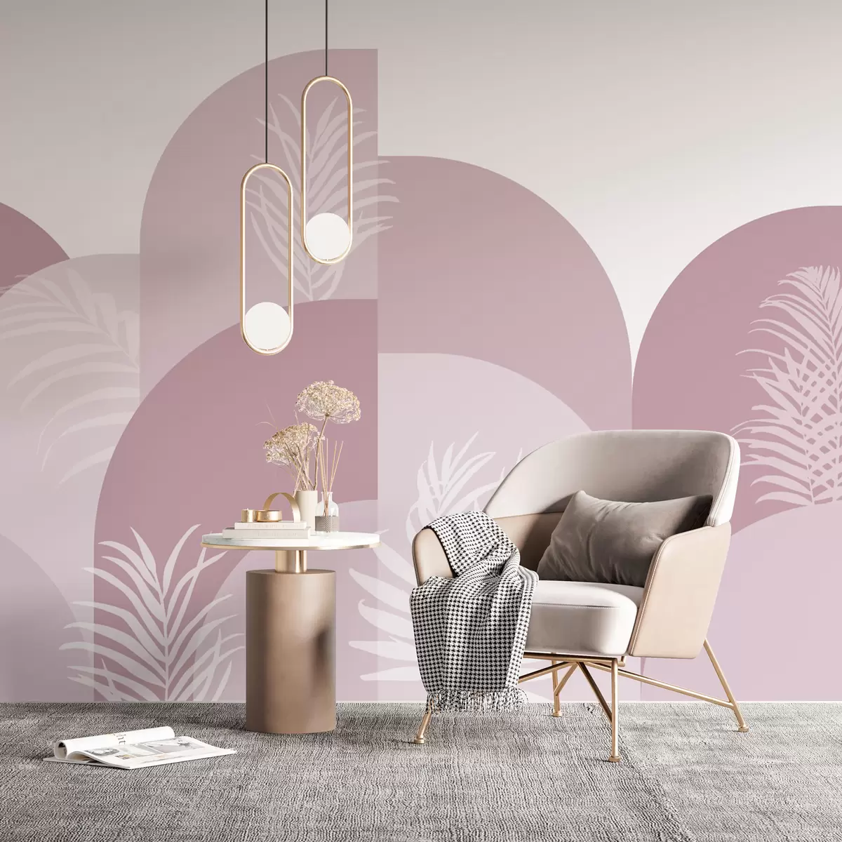 Fototapeta Modne łuki z tropikalnymi liśćmi w kolorze różowym Nr w02101v4