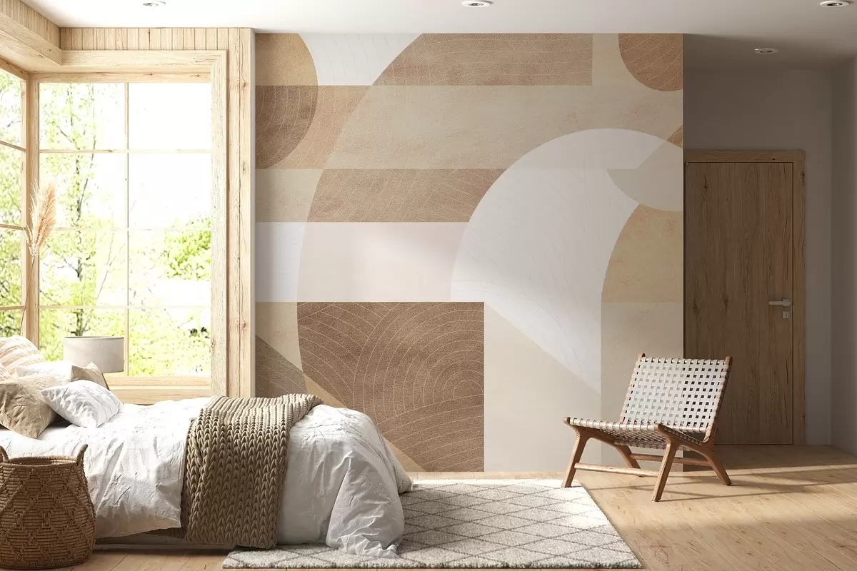 Fototapeta Nowoczesna geometria z abstrakcyjnymi kształtami, teksturowane detale w odcieniach beżu i brązu Nr w02140