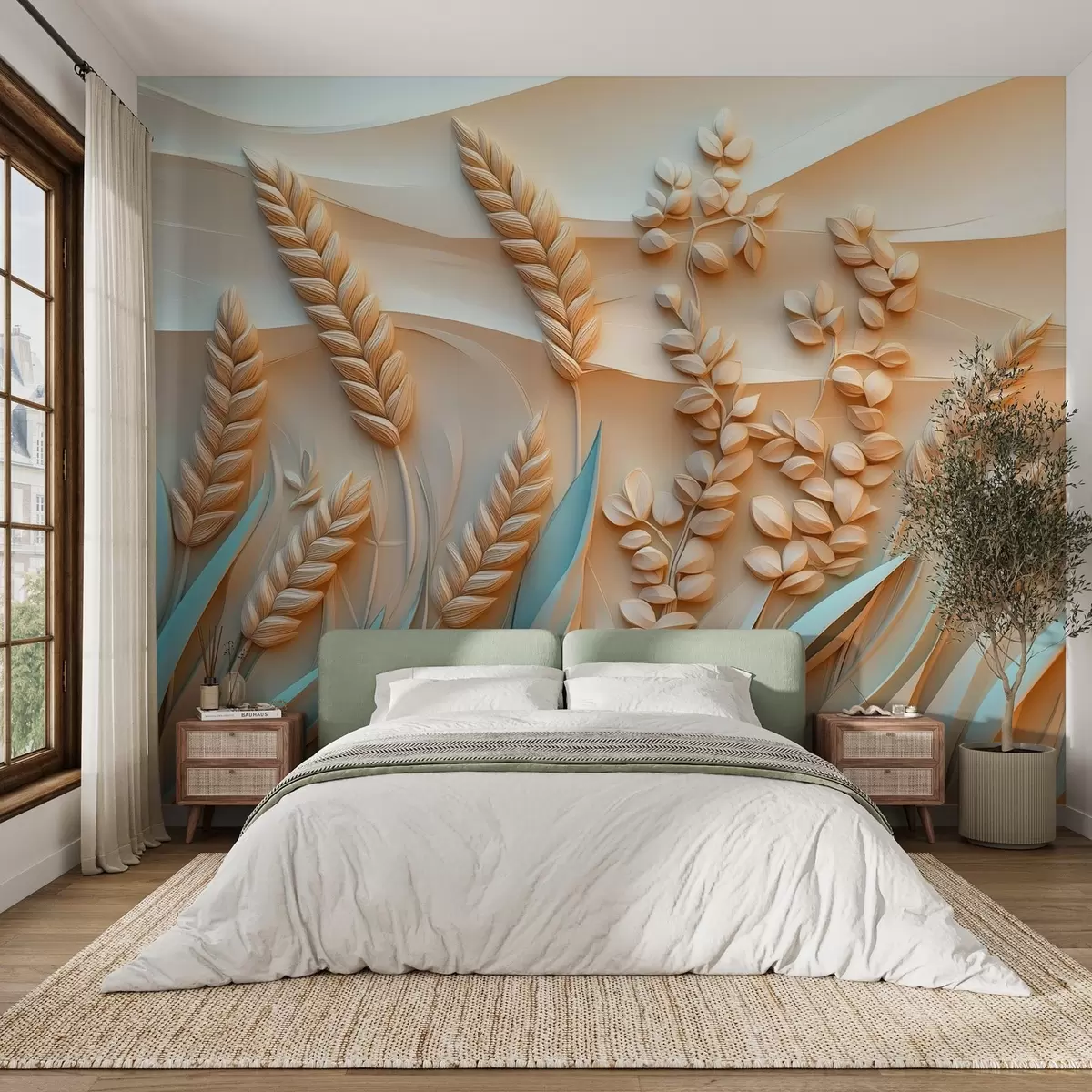 Fototapeta Wzrost pszenicy w wytłaczanym stylu w delikatnych kolorach Nr w02147