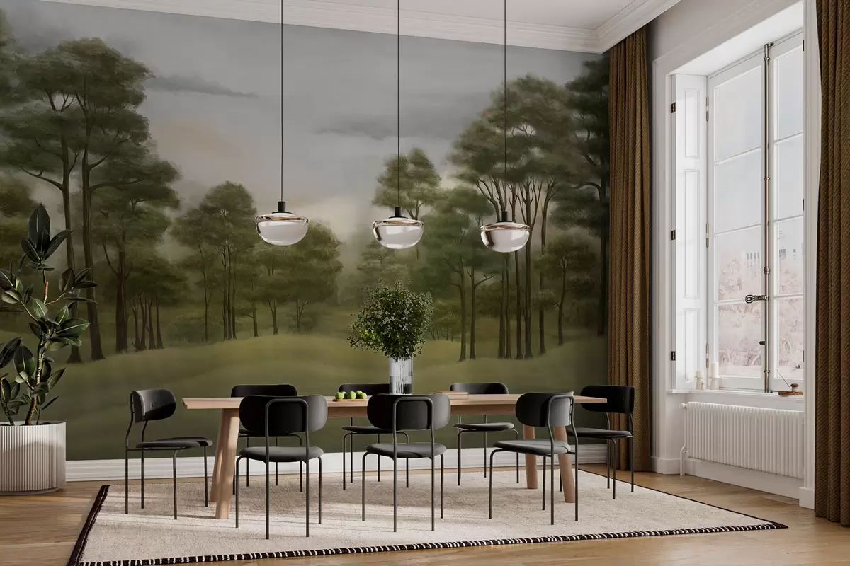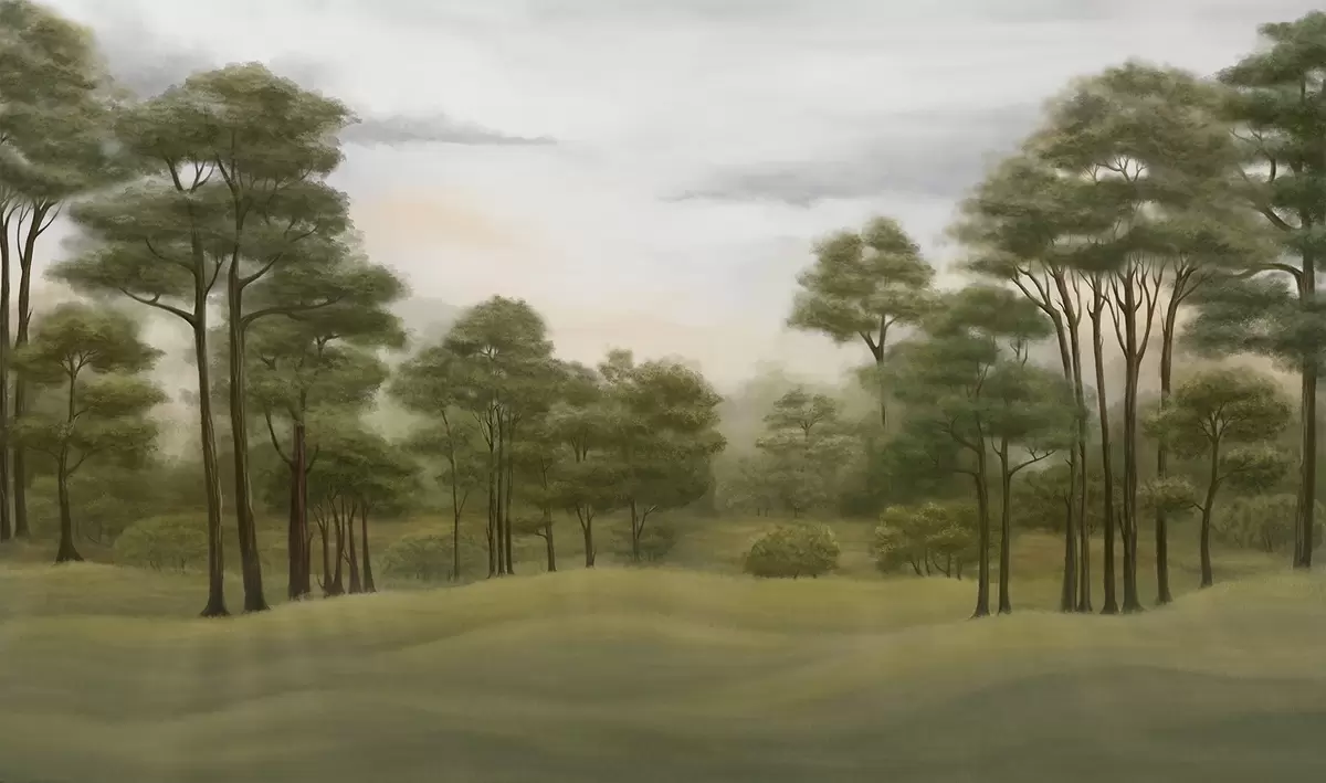 Fototapeta Spokojny krajobraz leśny w delikatnych odcieniach Nr w02193