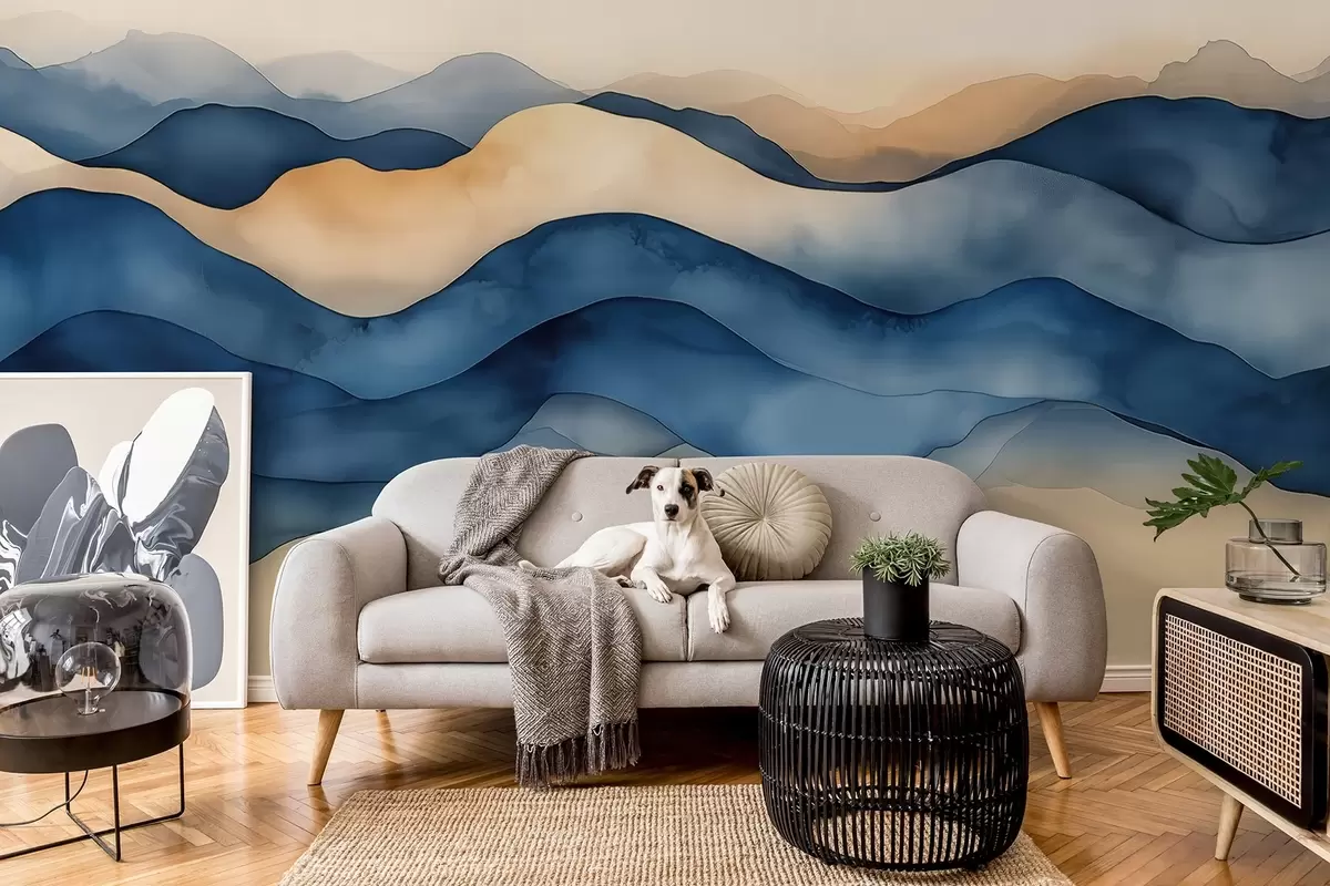 Fototapeta Abstrakcyjne niebiesko-beżowe fale przypominające góry Nr w02196