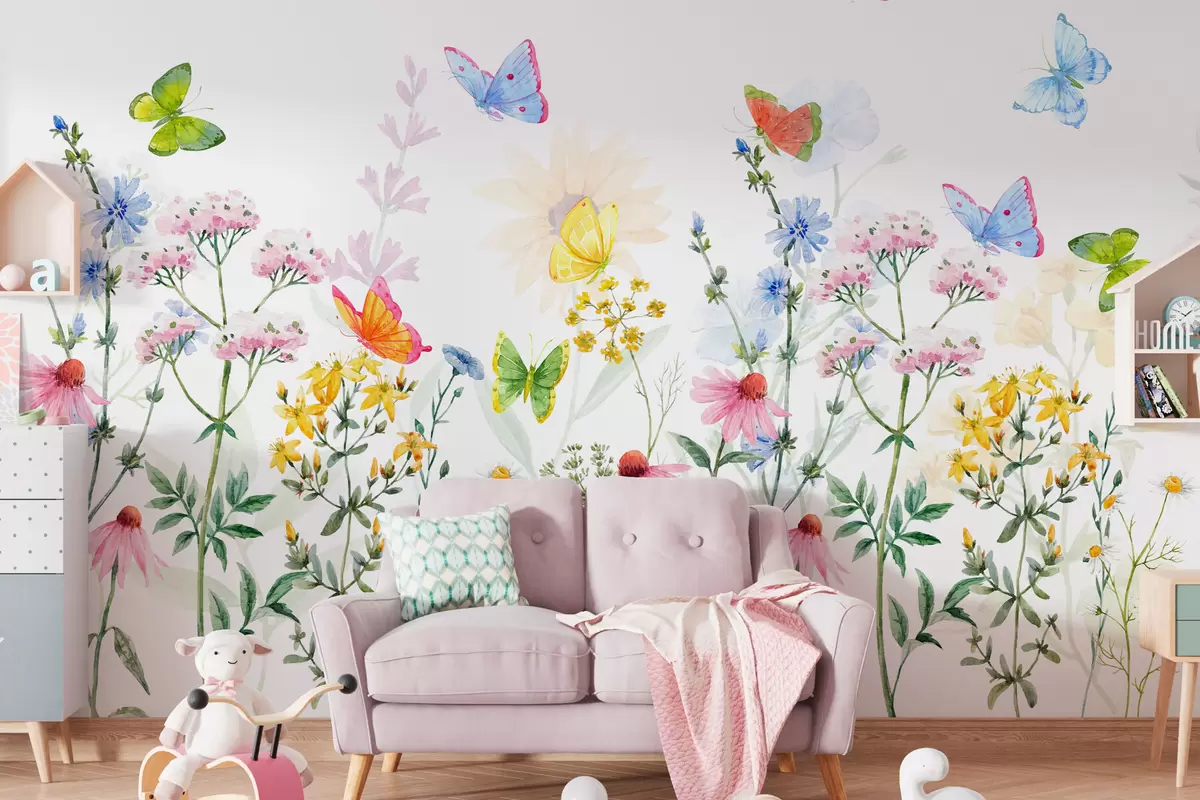 Fototapeta Kolorowe kwiaty, rośliny i motyle Nr w02238