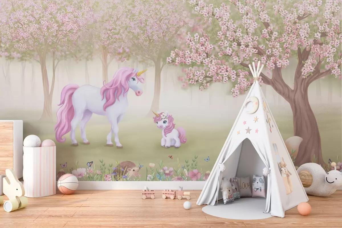 Fototapeta Jednorożce w magicznym lesie ze zwierzętami Nr w02269