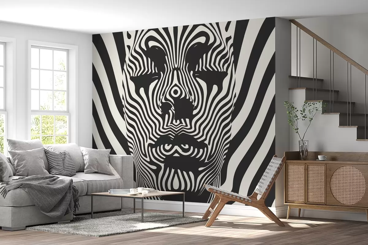 Fototapeta Krata w stylu op art z abstrakcyjną twarzą, faliste linie na jasnym tle. Nr w02285