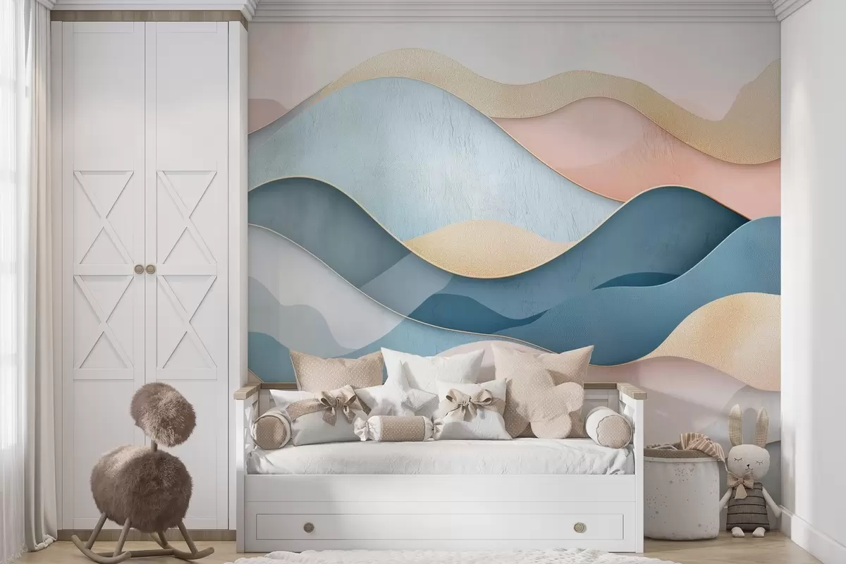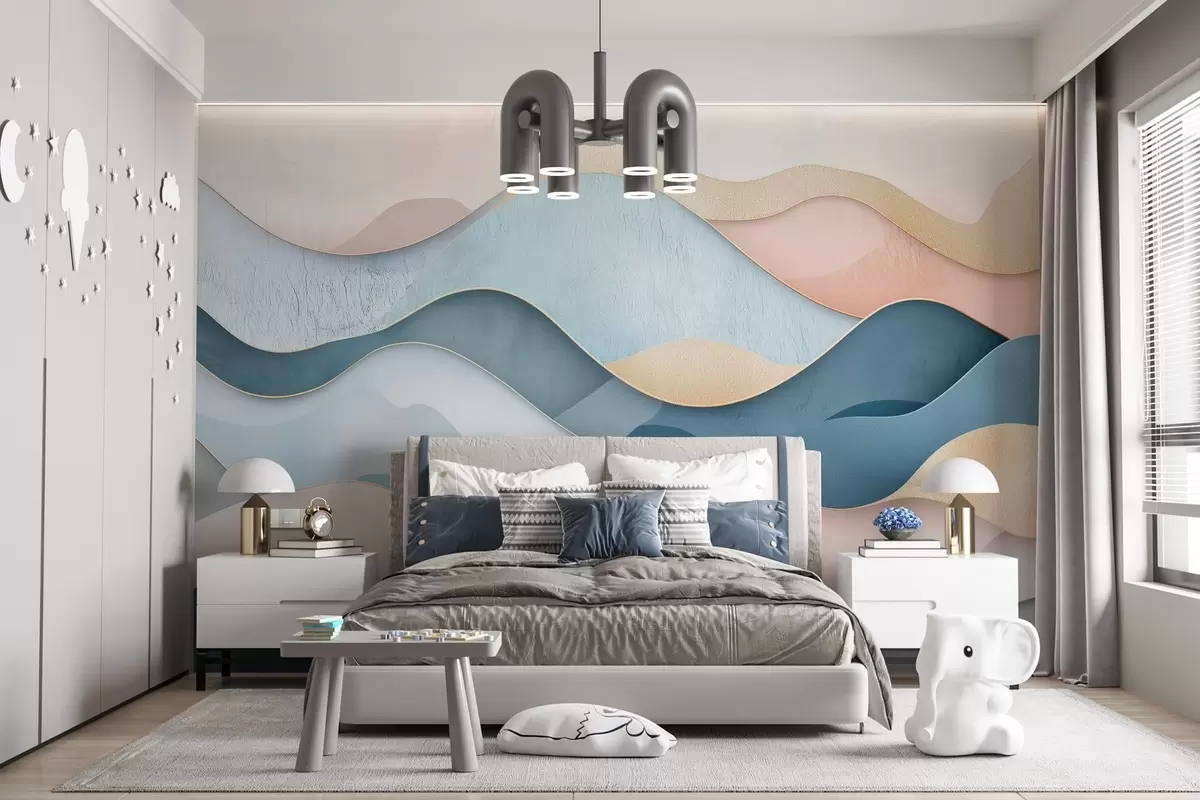 Fototapeta Falisty wzór Art Deco w różowych i niebieskich kolorach Nr w02290