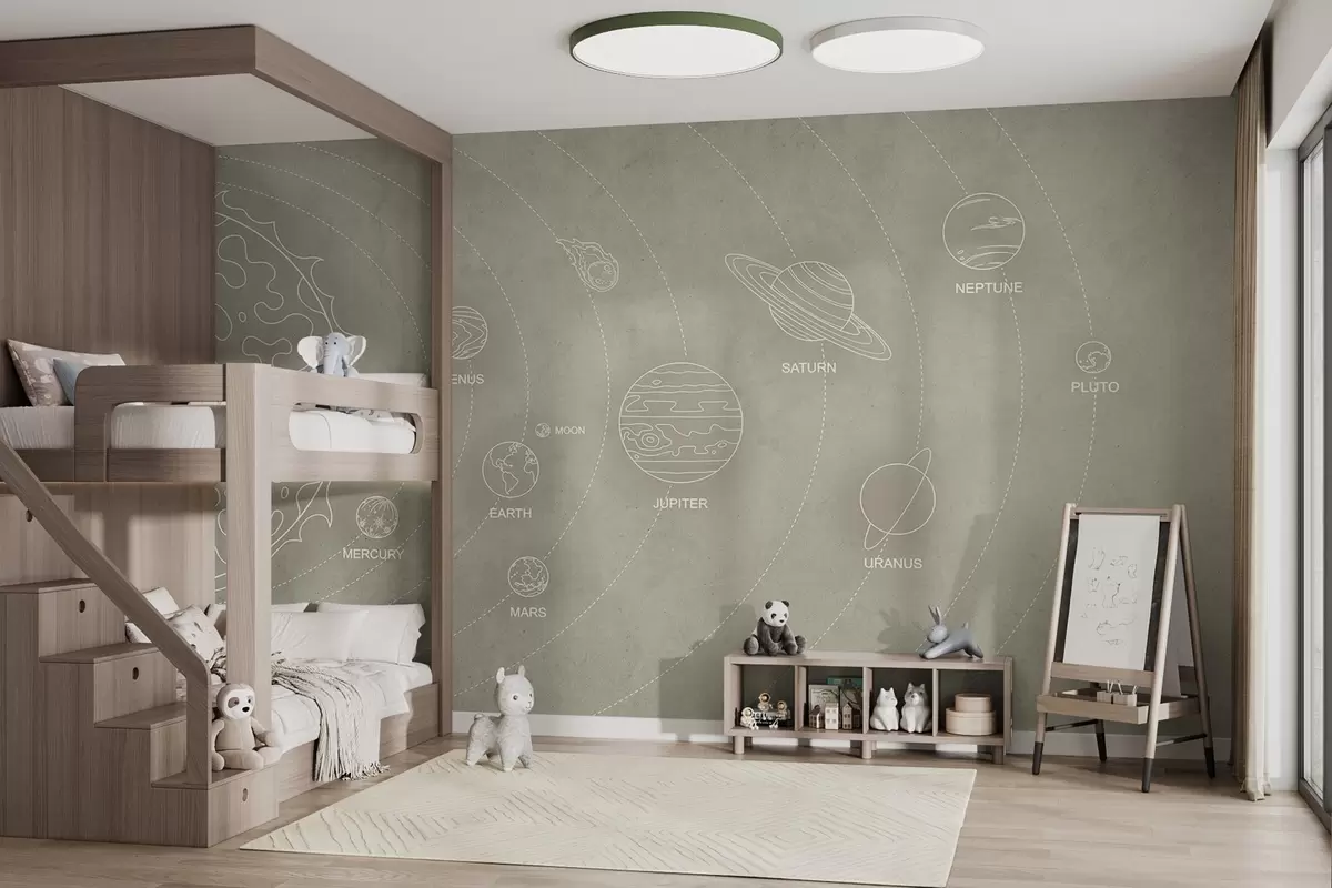 Fototapeta Układ słoneczny w minimalistycznym stylu na chłodnym beżowym teksturowanym tle Nr w02344