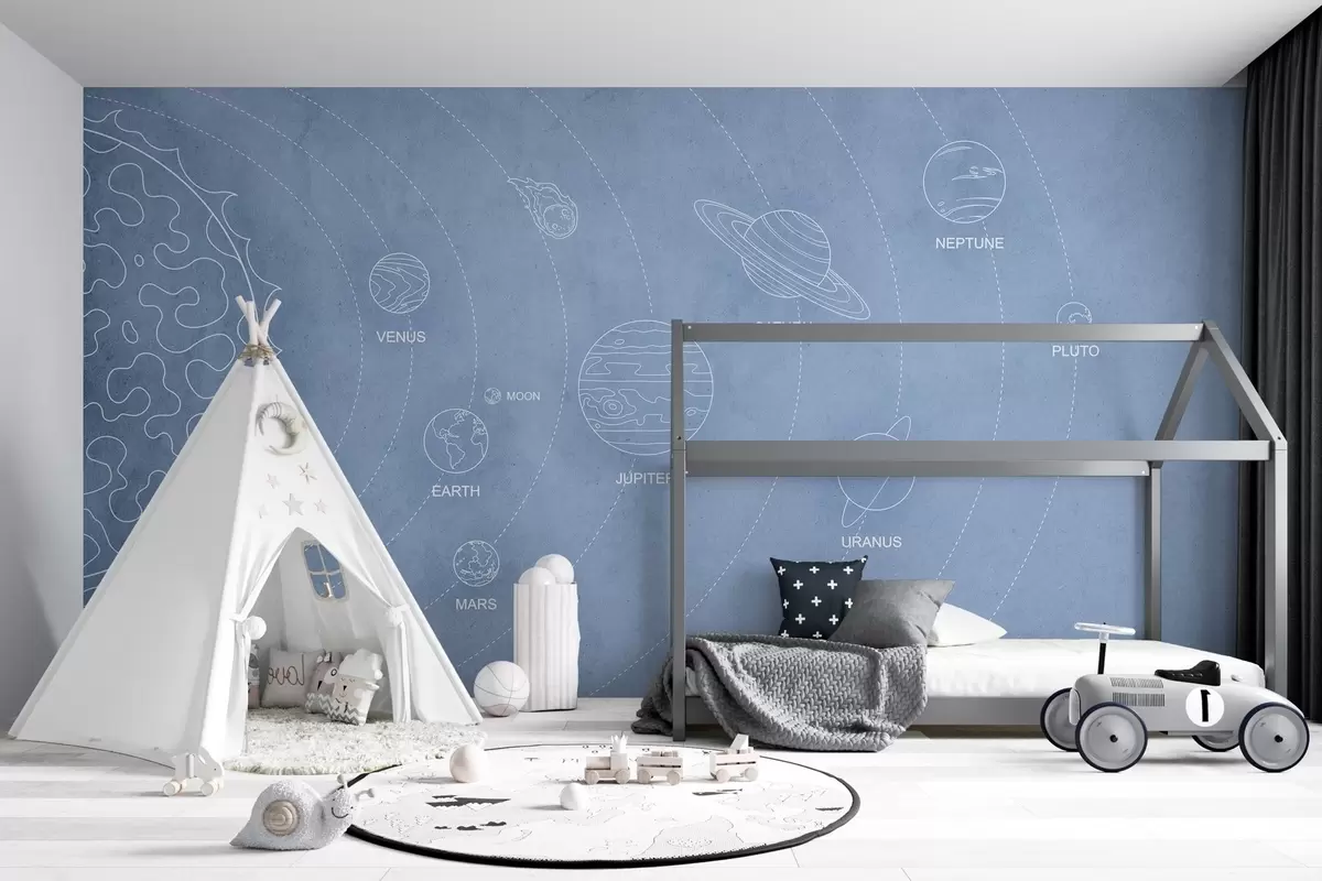 Fototapeta Układ słoneczny w minimalistycznym stylu na niebieskim teksturowanym tle Nr w02344v1