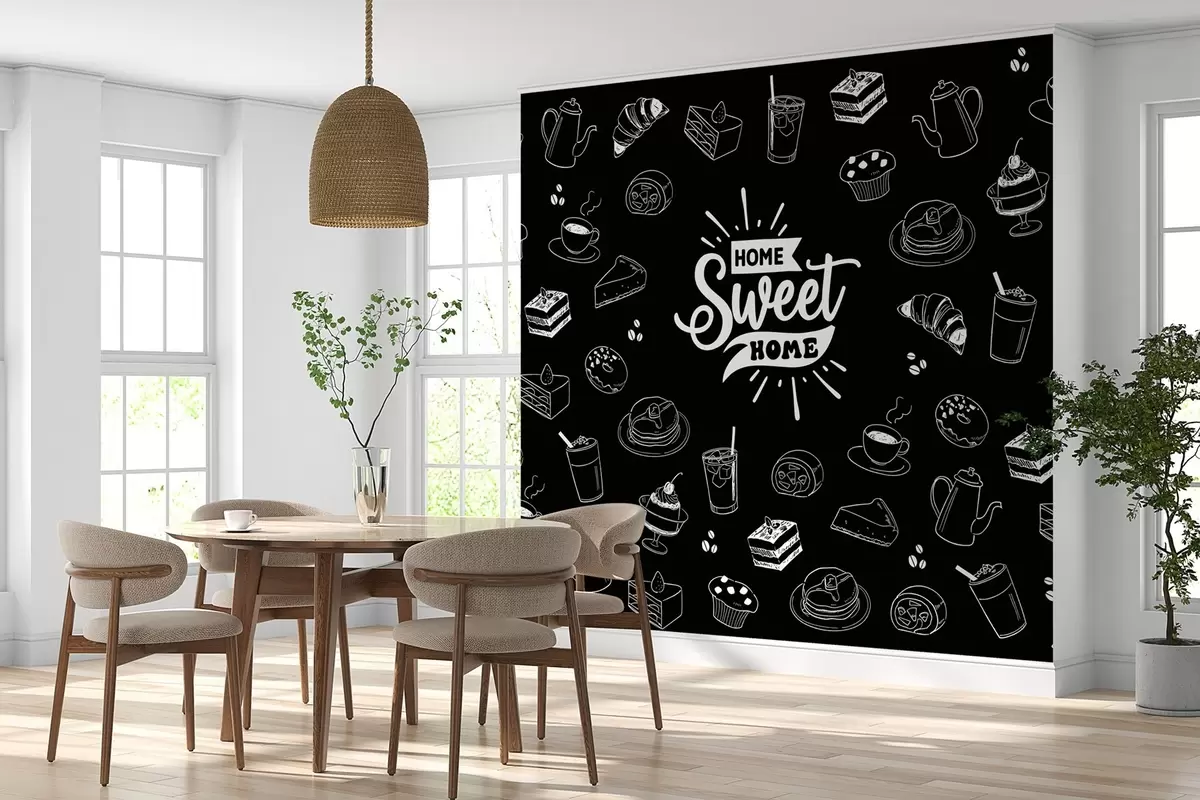Fototapeta czarna tapeta do kuchni z białymi wzorami Nr w02349