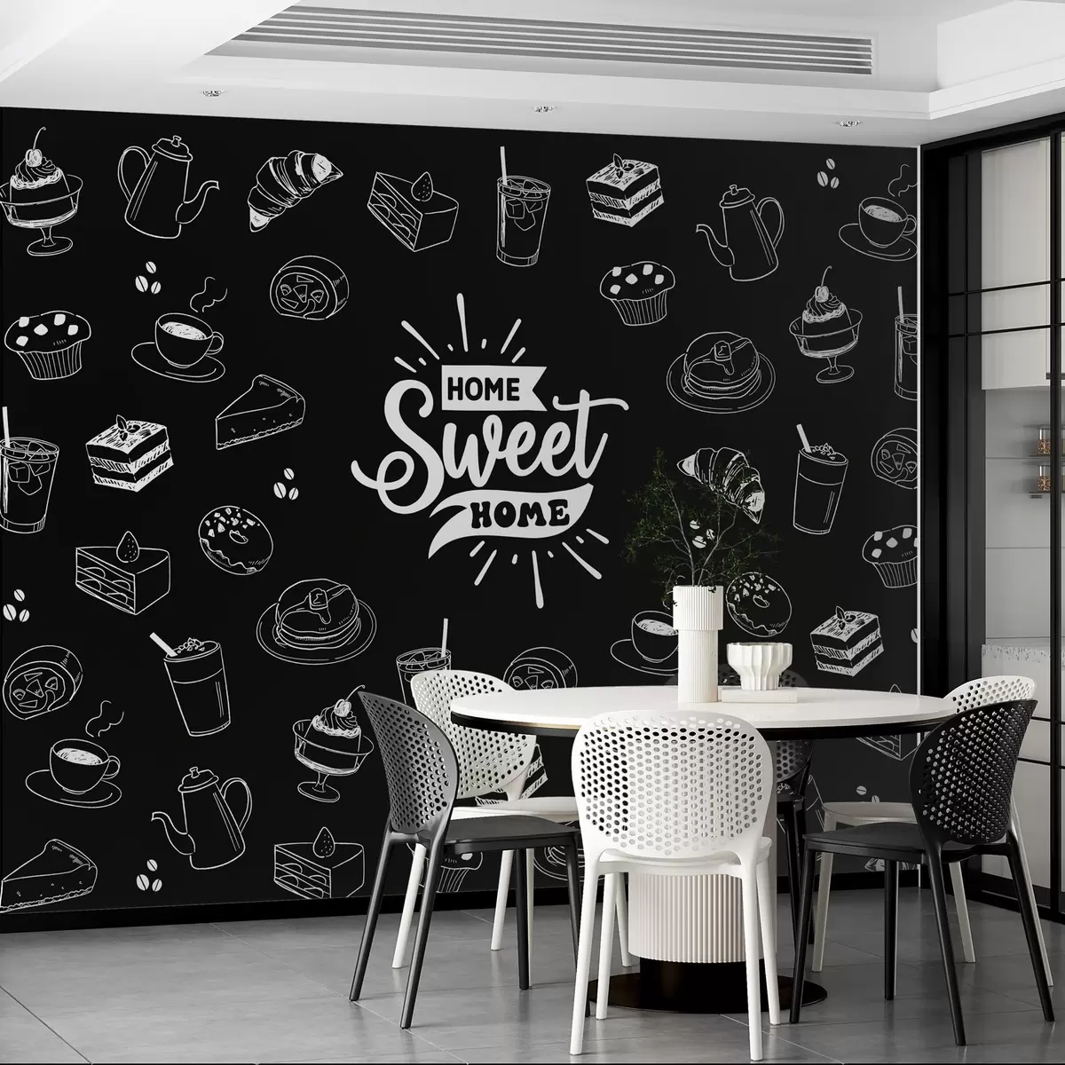 Fototapeta czarna tapeta do kuchni z białymi wzorami Nr w02349