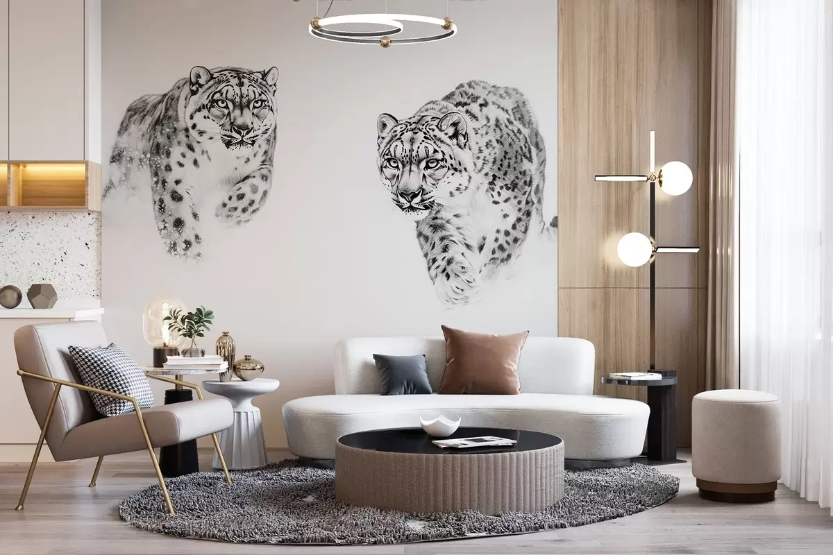 Fototapeta Pantery śnieżne, zima, dzikie zwierzęta, rysunek ołówkiem, minimalizm Nr w02359