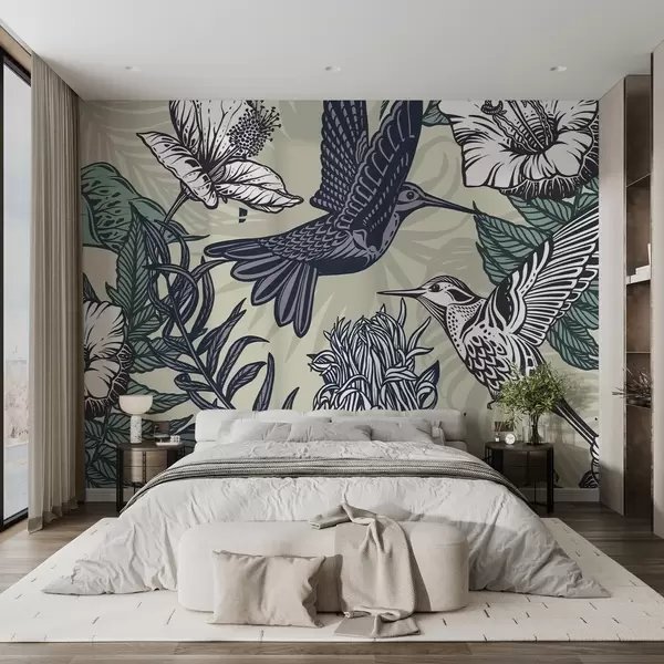 Fototapeta Kolibry i kwitnące kwiaty Nr w02362