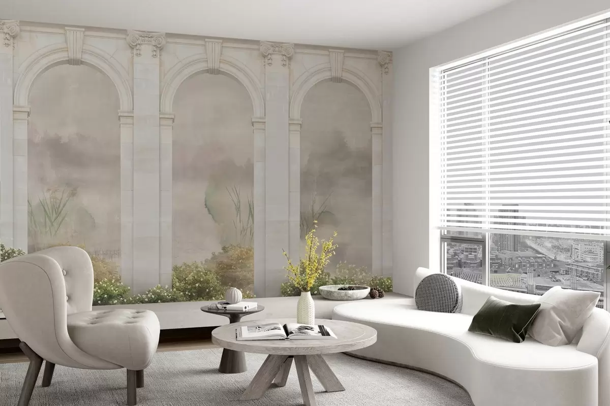 Fototapeta Lekkie łuki z krzewami i kwiatami Nr w02371v1
