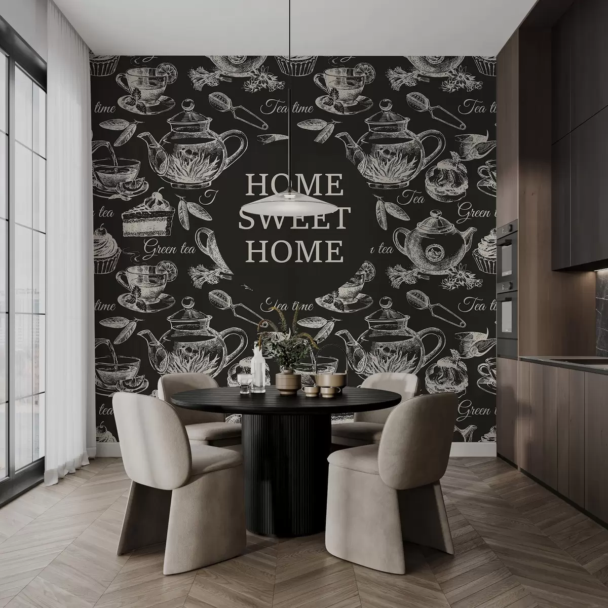 Fototapeta ciemna tapeta do kuchni z beżowymi wzorami Nr w02404