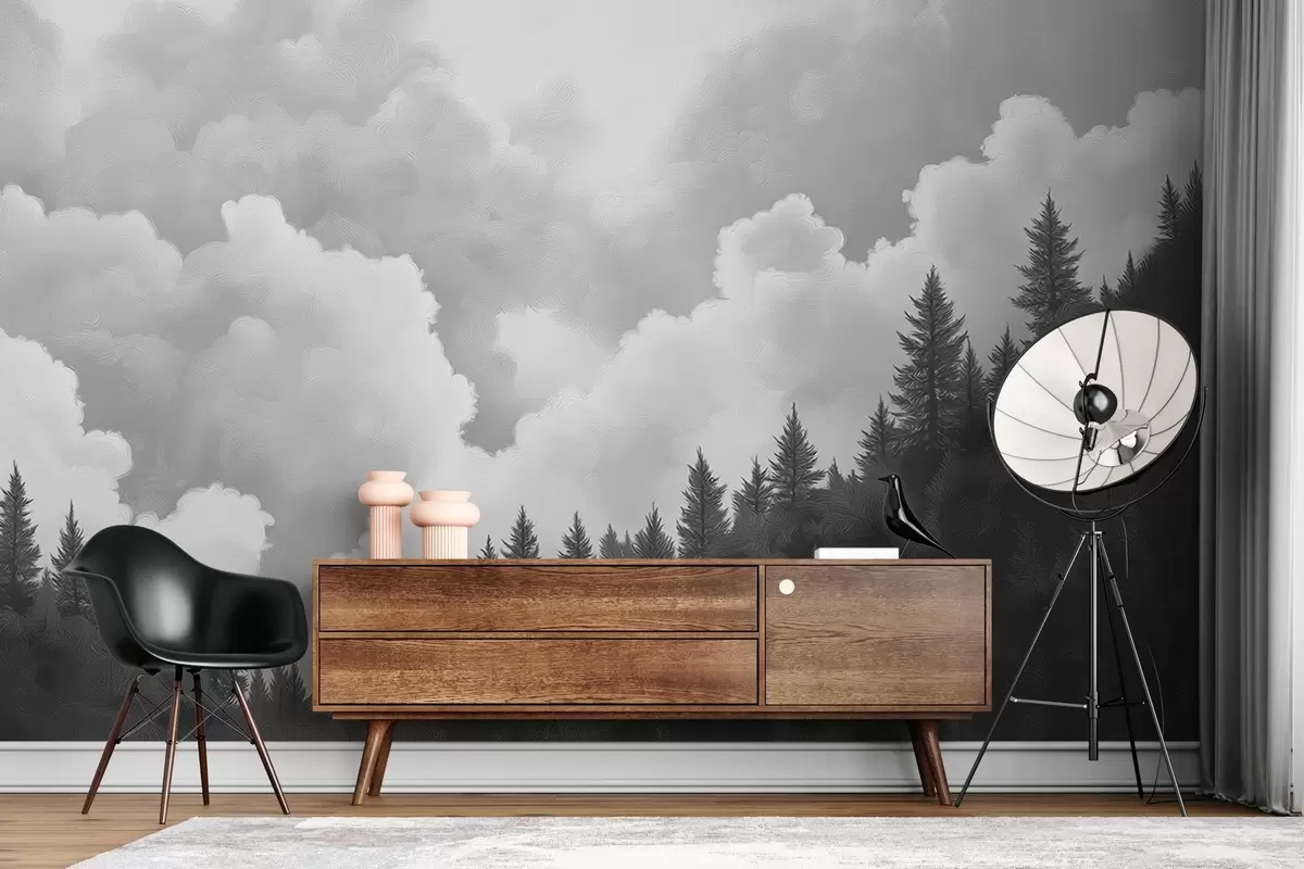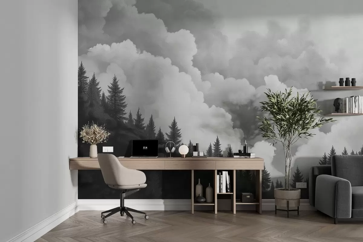 Fototapeta Namalowane grube chmury nad lasem w stylu olejnym Nr w02411v3