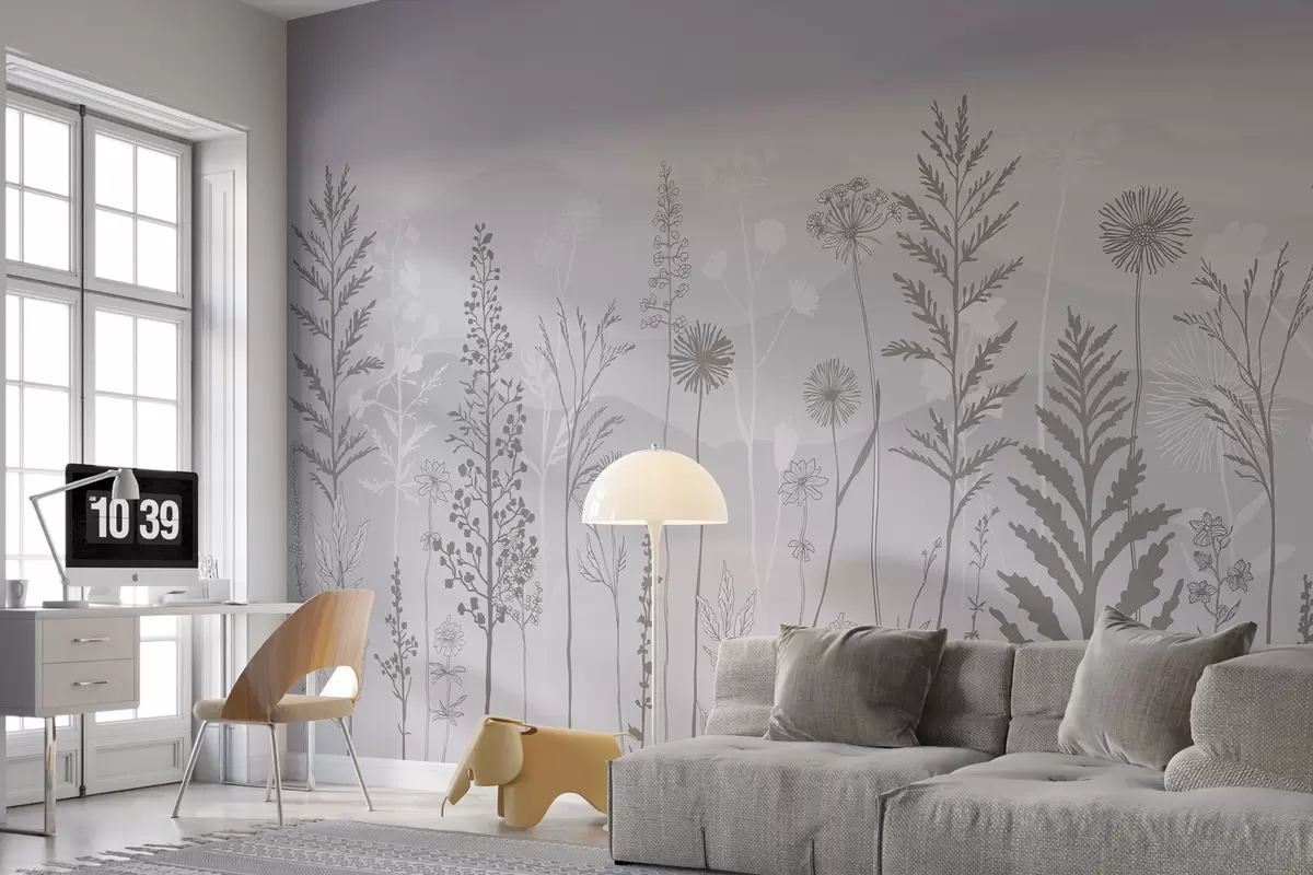 Fototapeta tapeta w stylu eko, polne kwiaty w odcieniach szarości Nr w02443