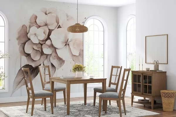 Fototapeta Rysunek hortensji, styl akwareli, beżowe kolory Nr w02483