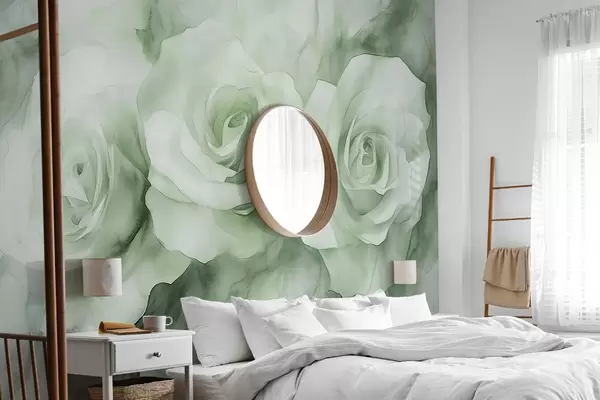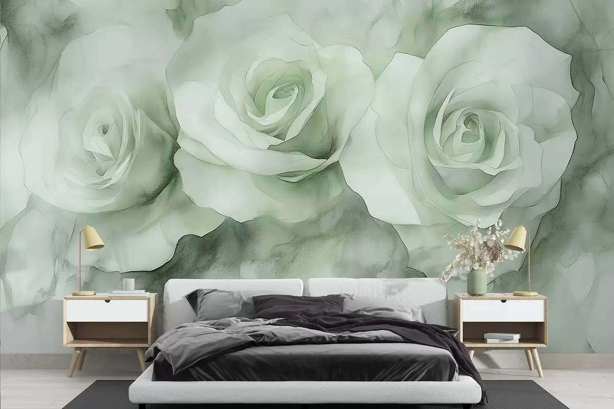 Fototapeta Piękne róże, styl akwareli, zielone kolory, bohema Nr w02492v2