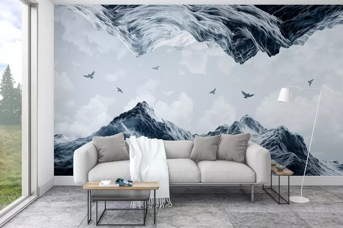 Fototapeta Góry krajobraz, realizm, latające ptaki, natura, chmury, niebieskie kolory Nr w02514v1