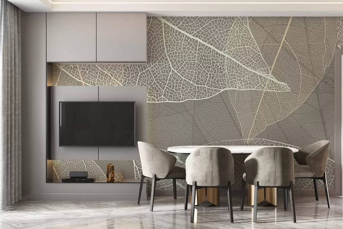 Fototapeta zbliżenie liści z żyłkami w ciepłych odcieniach szarości Nr w02520v2
