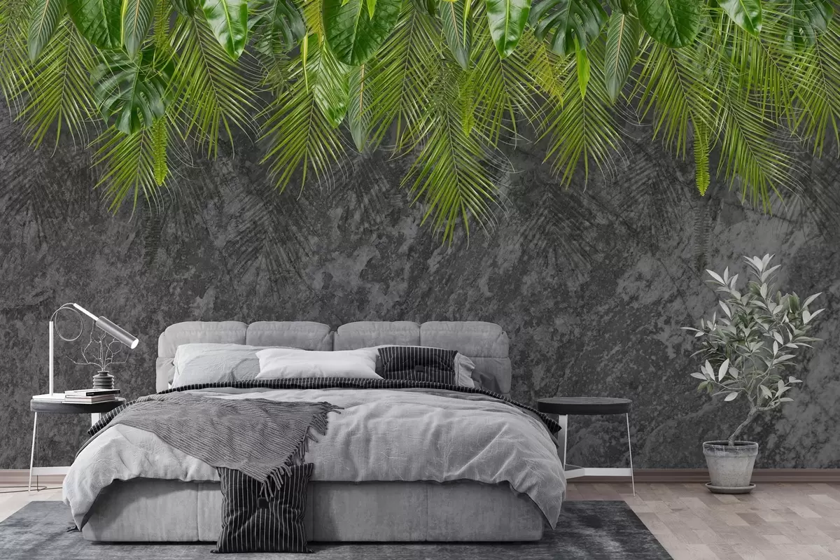 Fototapeta tropikalne liście na tle imitacji kamienia Nr w02547