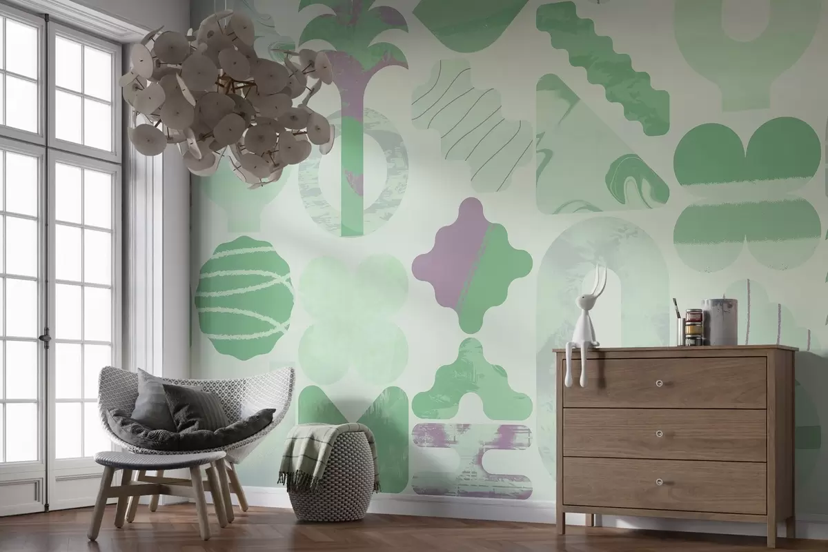 Fototapeta różne ciekawe kształty, nowoczesna geometria w zielonych kolorach Nr w02550v2