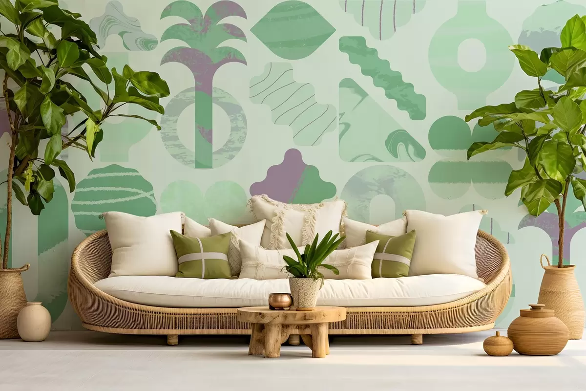 Fototapeta różne ciekawe kształty, nowoczesna geometria w zielonych kolorach Nr w02550v2