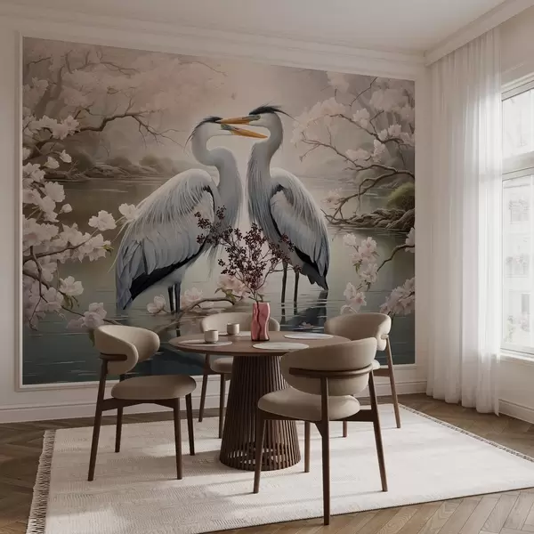 Fototapeta Para bocianów w kwitnącym ogrodzie Nr w02621