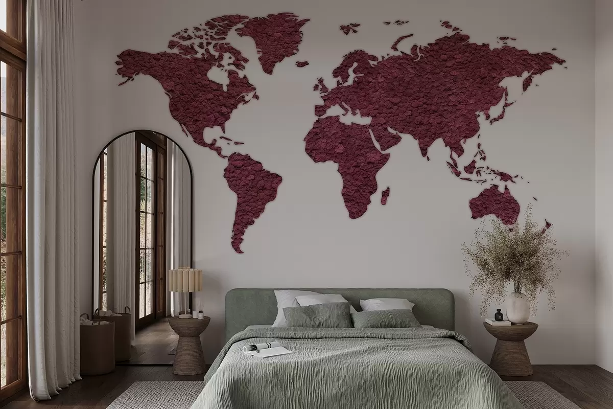 Fototapeta Mapa świata z mchem, natura, bordowa paleta kolorów Nr w02657v5