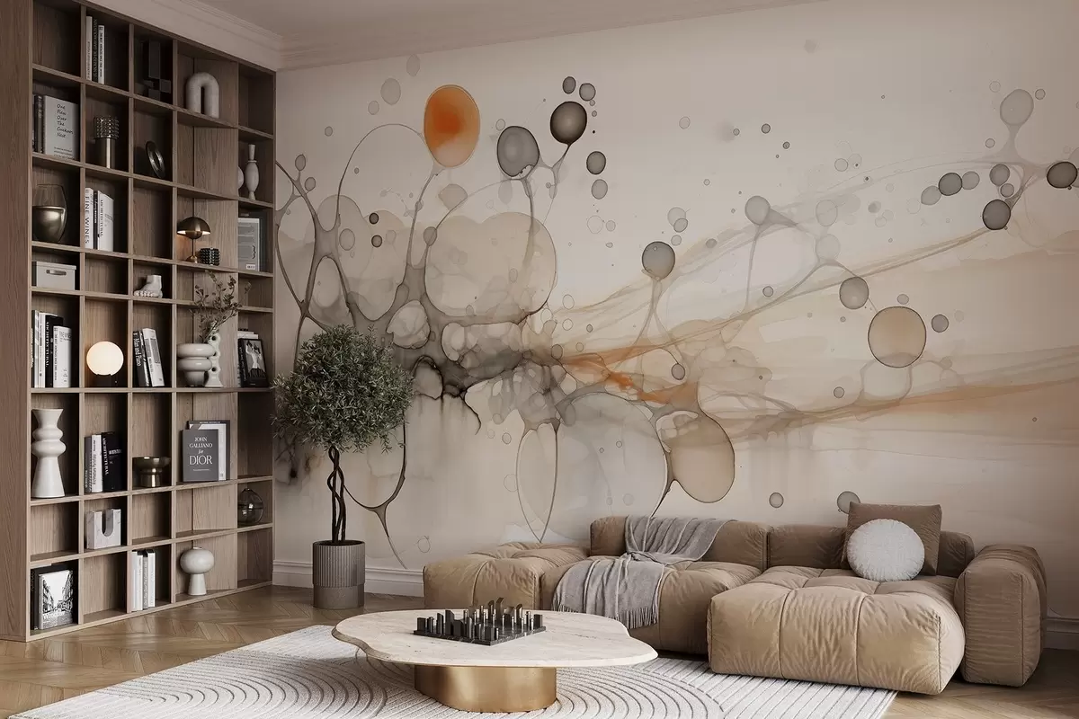 Fototapeta Abstrakcja, minimalizm, sztuka tuszu, płynne, beżowe i szare kolory Nr w02750