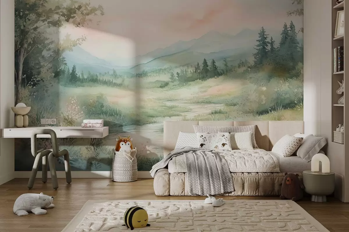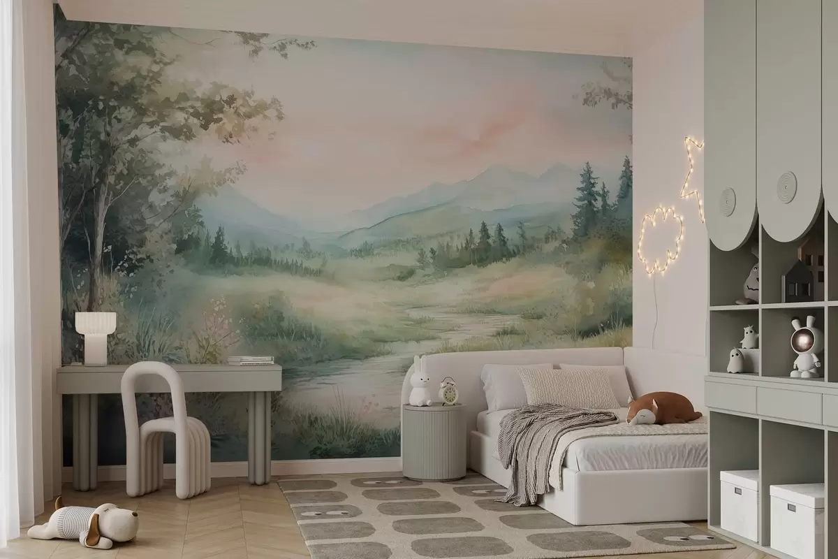 Fototapeta akwarelowy krajobraz ze ścieżką i górami Nr w02764