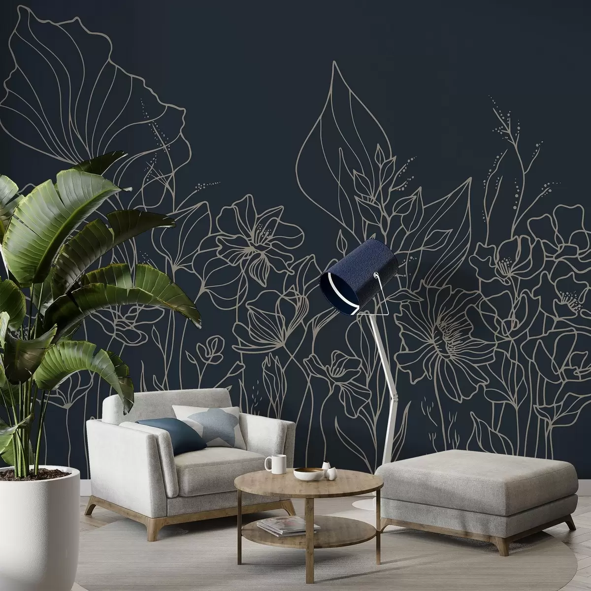 Fototapeta Elegancka kwiatowa grafika na granatowym tle Nr w02773v2