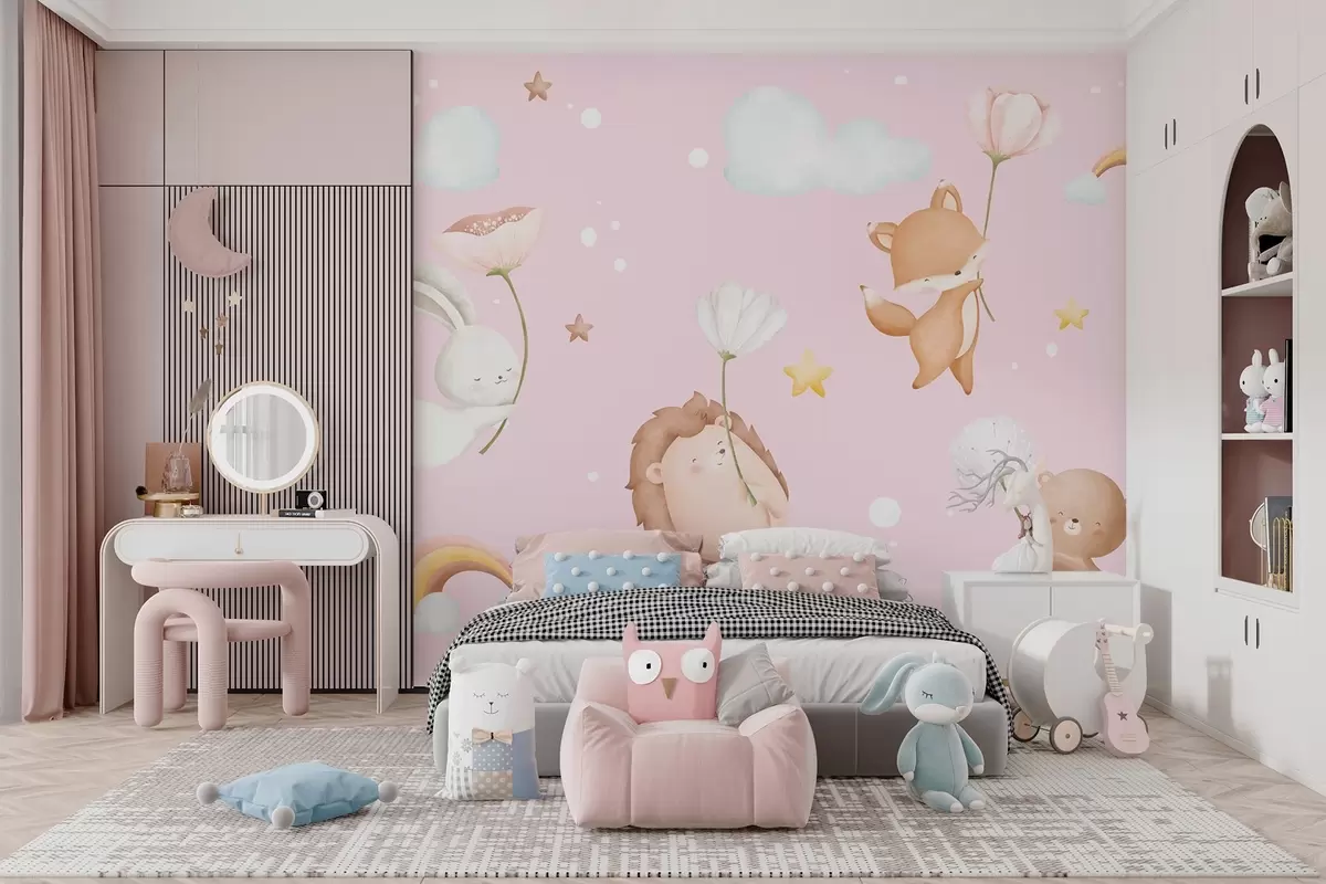 Fototapeta Zwierzęta z kwiatami na różowym tle Nr w02897
