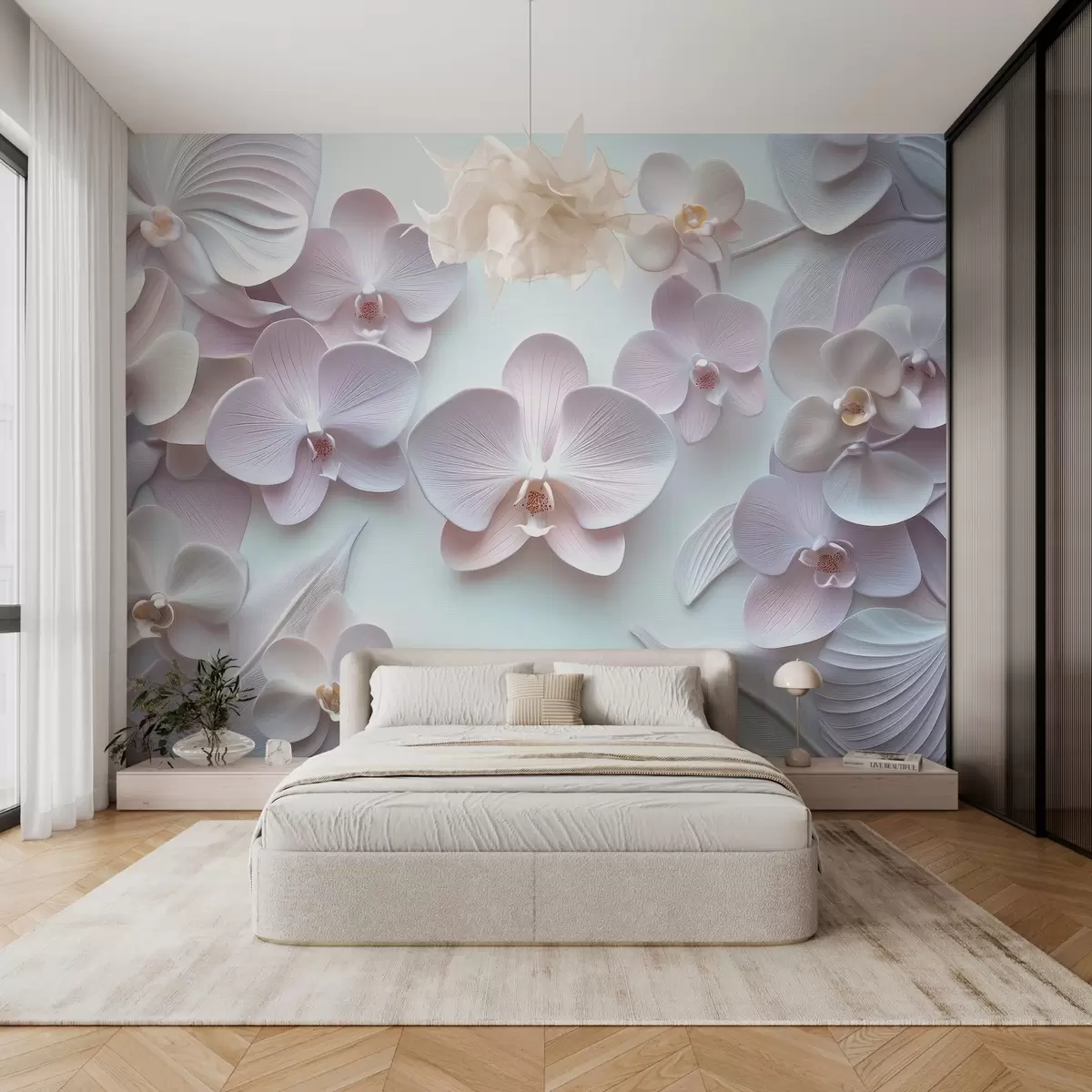 Fototapeta Delikatne kwiaty archidii w jasnych kolorach z imitacją 3D Nr w02912