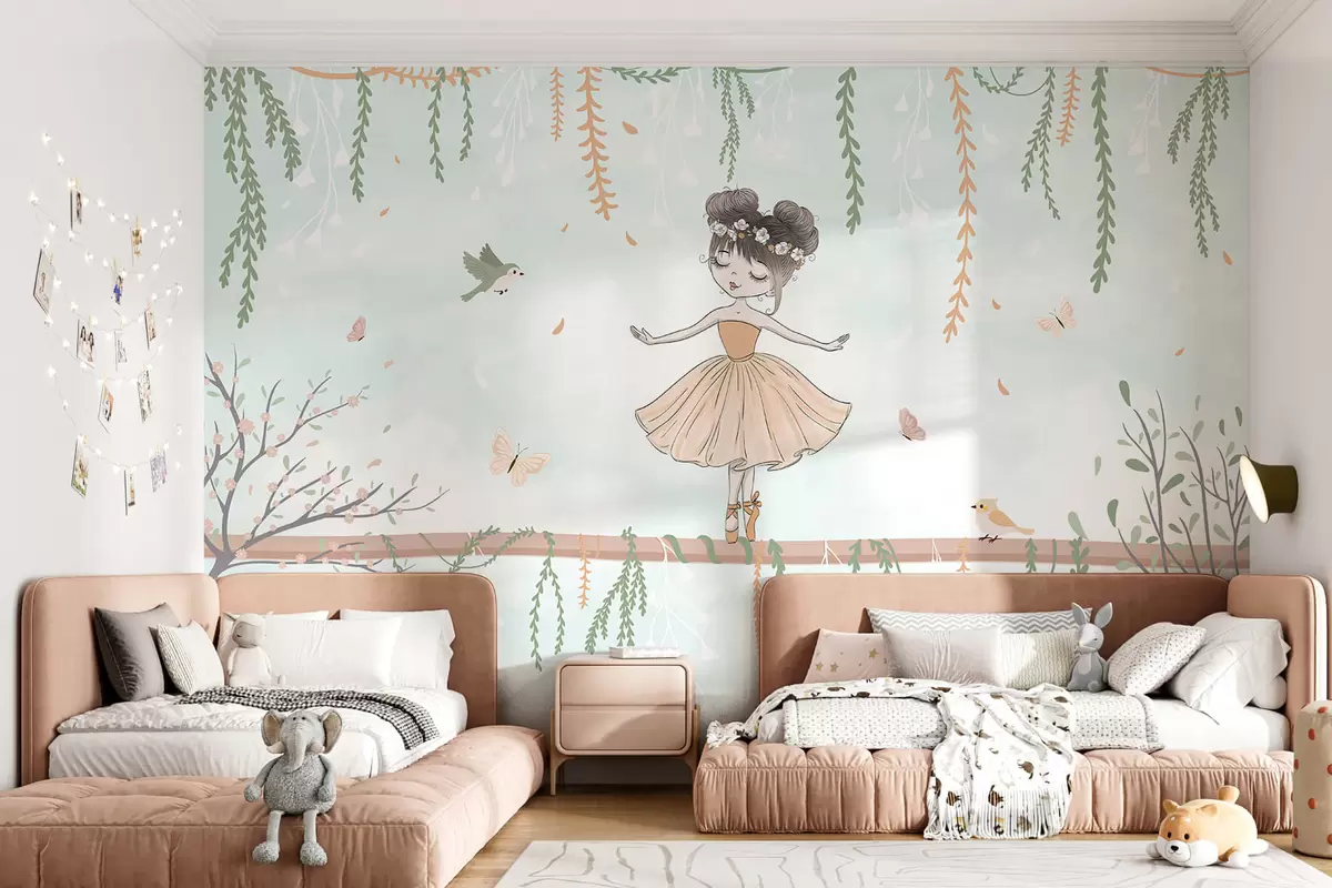 Fototapeta Krajobraz z księżniczką z ptakami i motylami Nr w03003v1