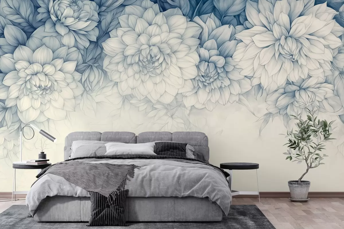 Fototapeta bujne monochromatyczne chryzantemy zwisające z góry Nr w03110