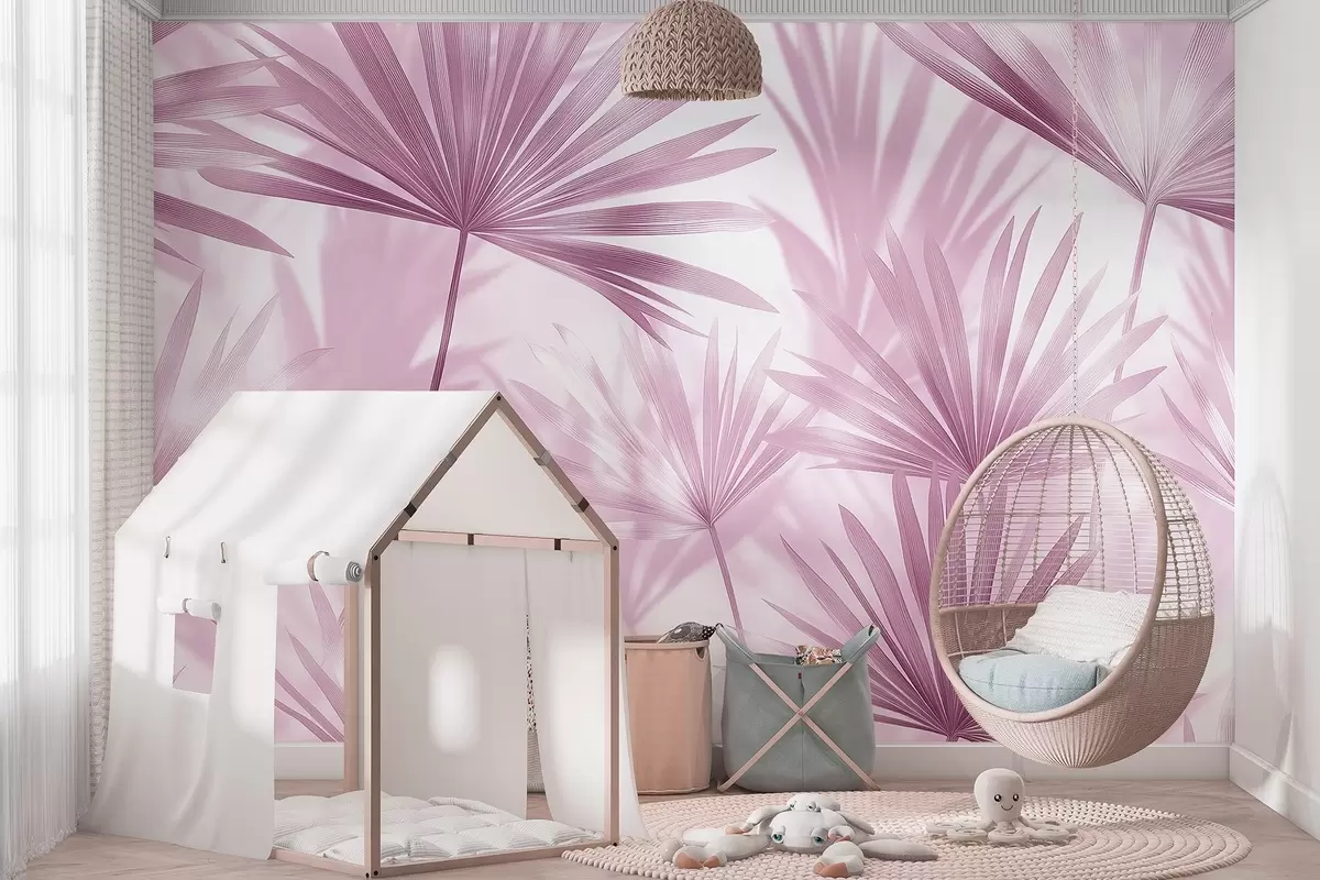 Fototapeta Liście palmowe, kwiatowy wzór, minimalizm, tropikalne, różowe kolory Nr w03152v4